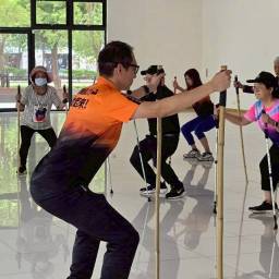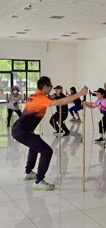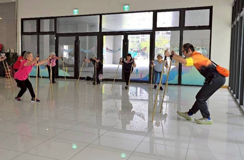 | 將所學動作整合為趣味群體訓練、增進樂趣與社交性 | 選擇前面各階段代表動作(例如深蹲、步伐加大、平衡練習)做混合循環訓練;可搭配健走杖小遊戲、團體走動互助、變換節奏。 |