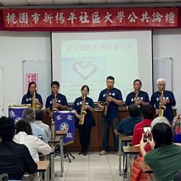 | 新進學員個別指導並融入班級課程,原班級學員提醒前期課程學習之樂曲與相互討論與分享。 | 薩克斯風吹奏時的站姿提醒,運氣吐納注意事項複習與同學之間相互討論 |