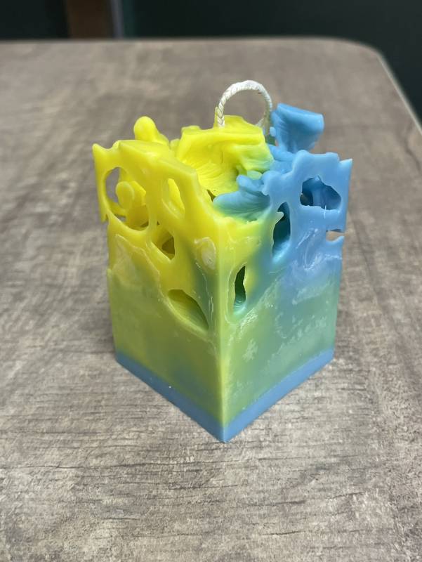 | 鏤空造型香氛蠟燭的製作 | "1. 置換技術的概念 2. 使用可溶性填充物(如冰塊)創造孔隙效果 3. 觀察蠟液冷卻與填充物融化後的結構變化" |
